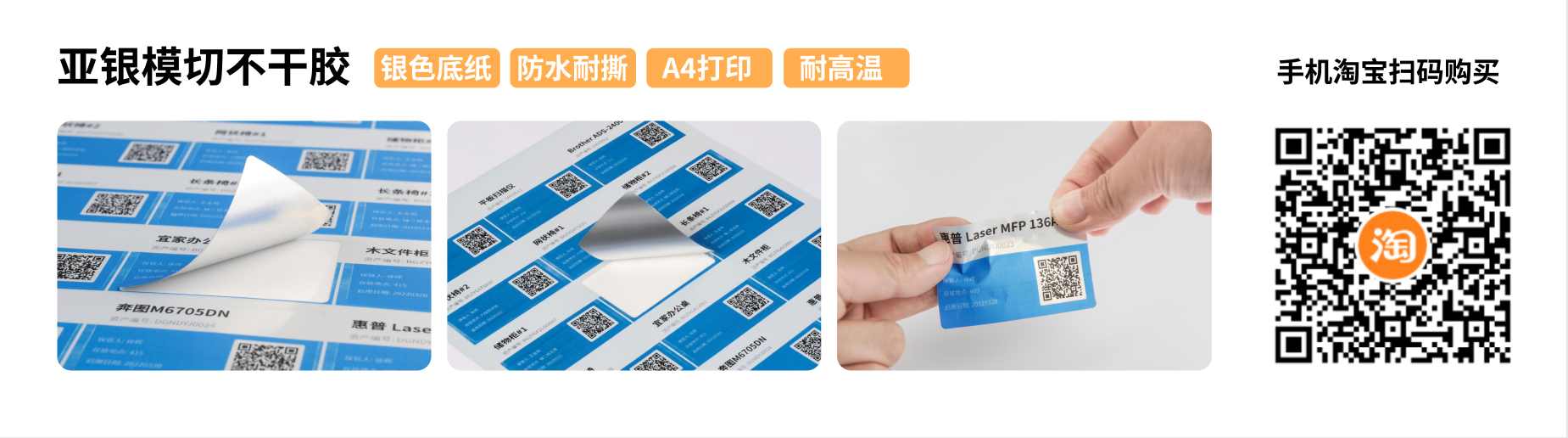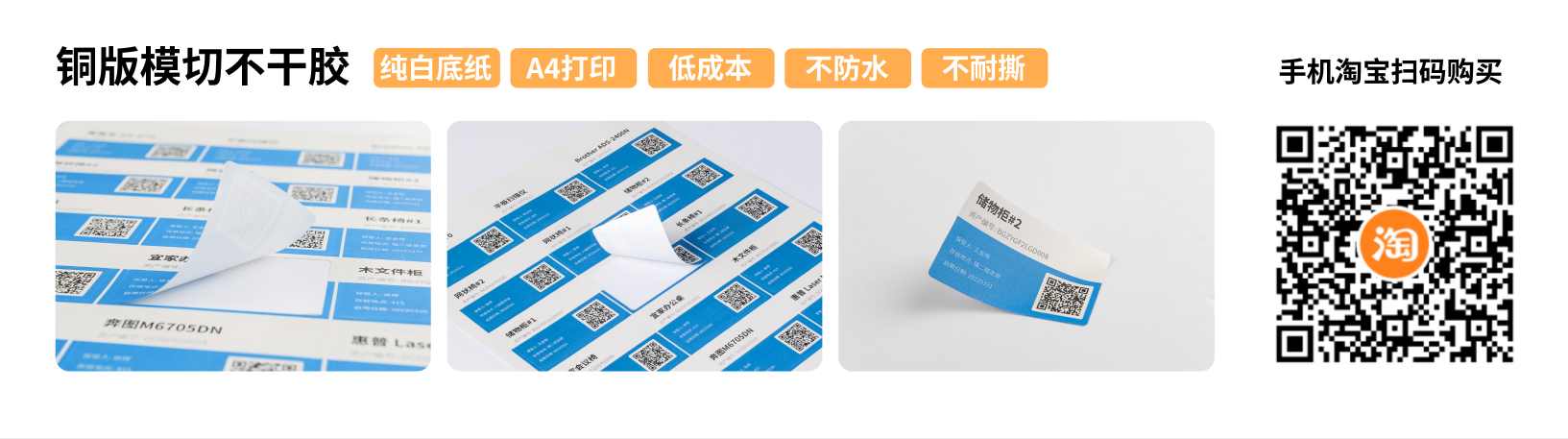 我们提供2种材质的模切不干胶,可使用普通激光A4打印机打印,无需裁切,撕下即可粘贴使用,更加灵活便捷。