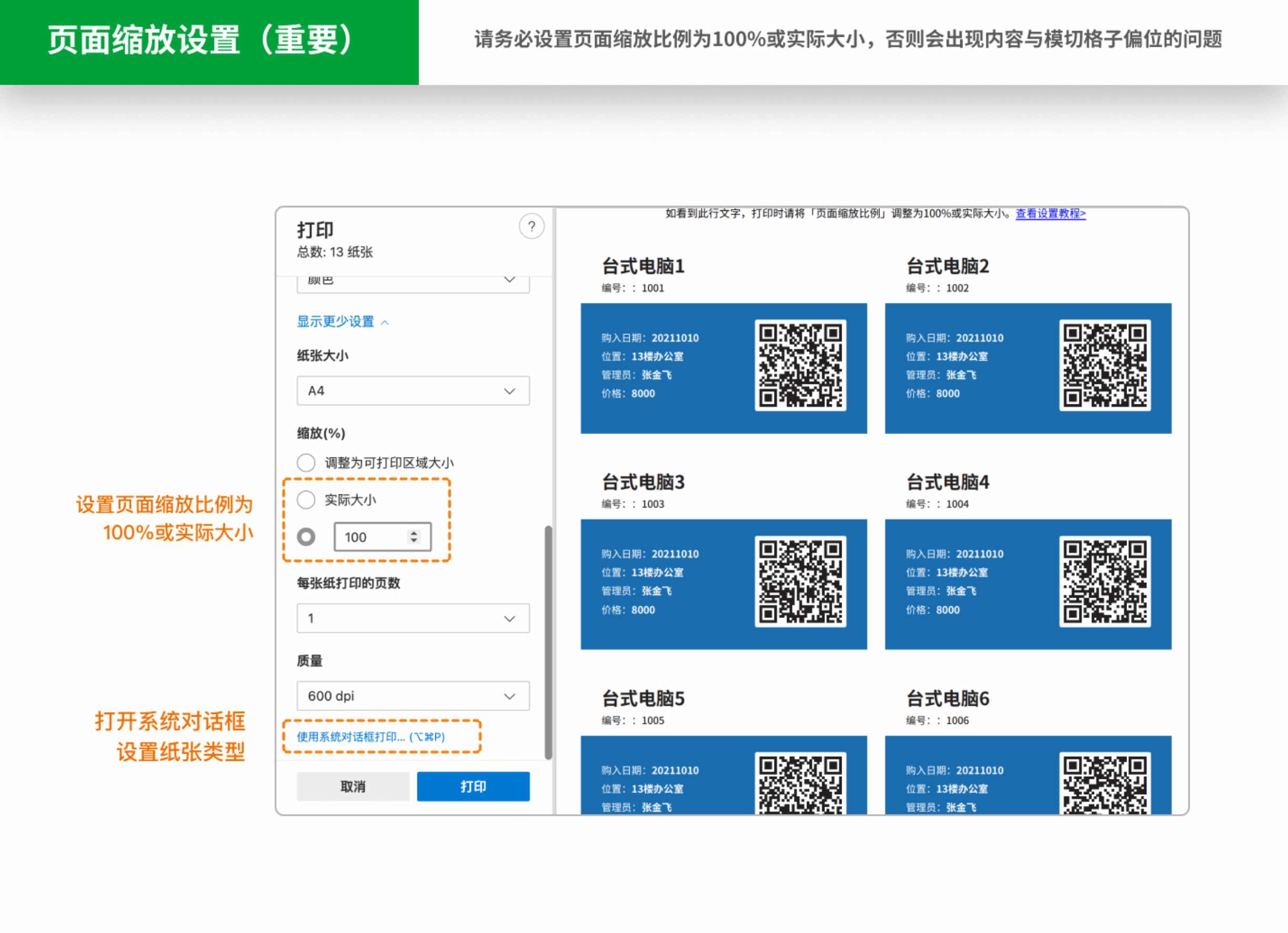 打印时,请务必将页面缩放比例设置为实际大小或100%