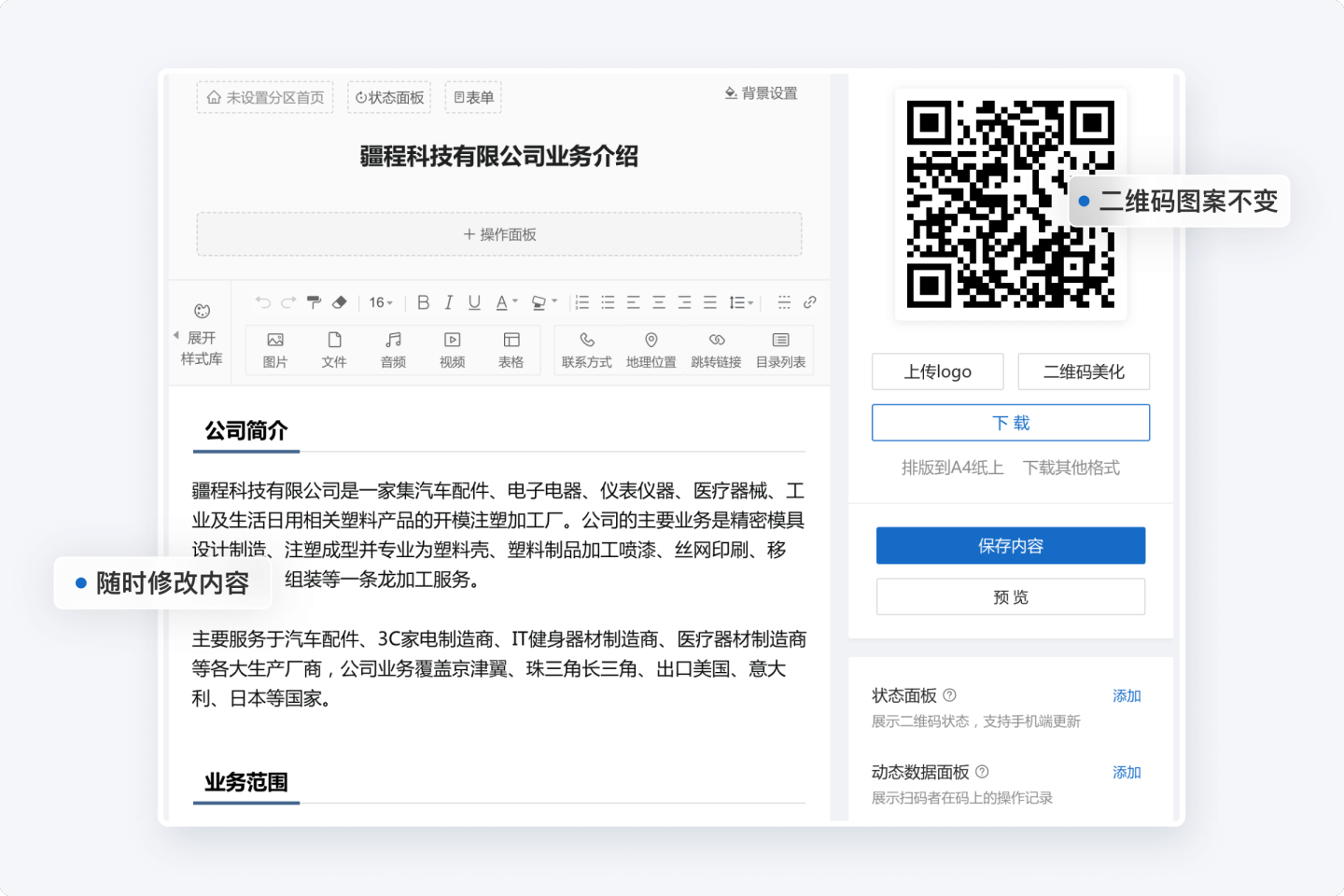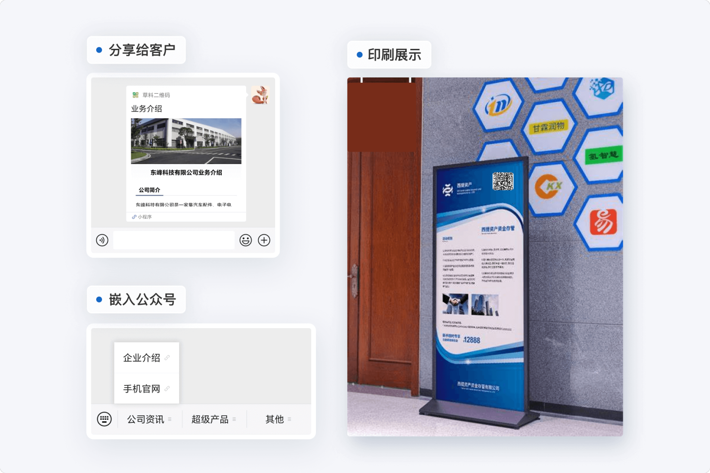 不需要大篇幅印刷材料,替代传统纸质海报、宣传页、名片