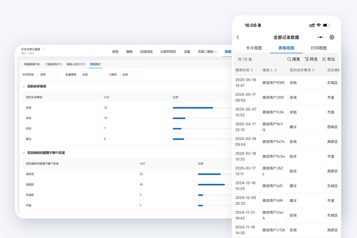 无需开发,快速搭建各类信息收集表单。数据实时导出,便于归档管理