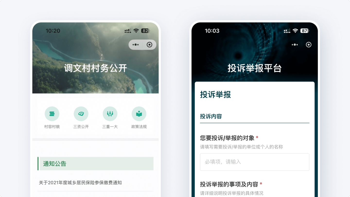 添加意见反馈等各类表单,方便群众扫码填写