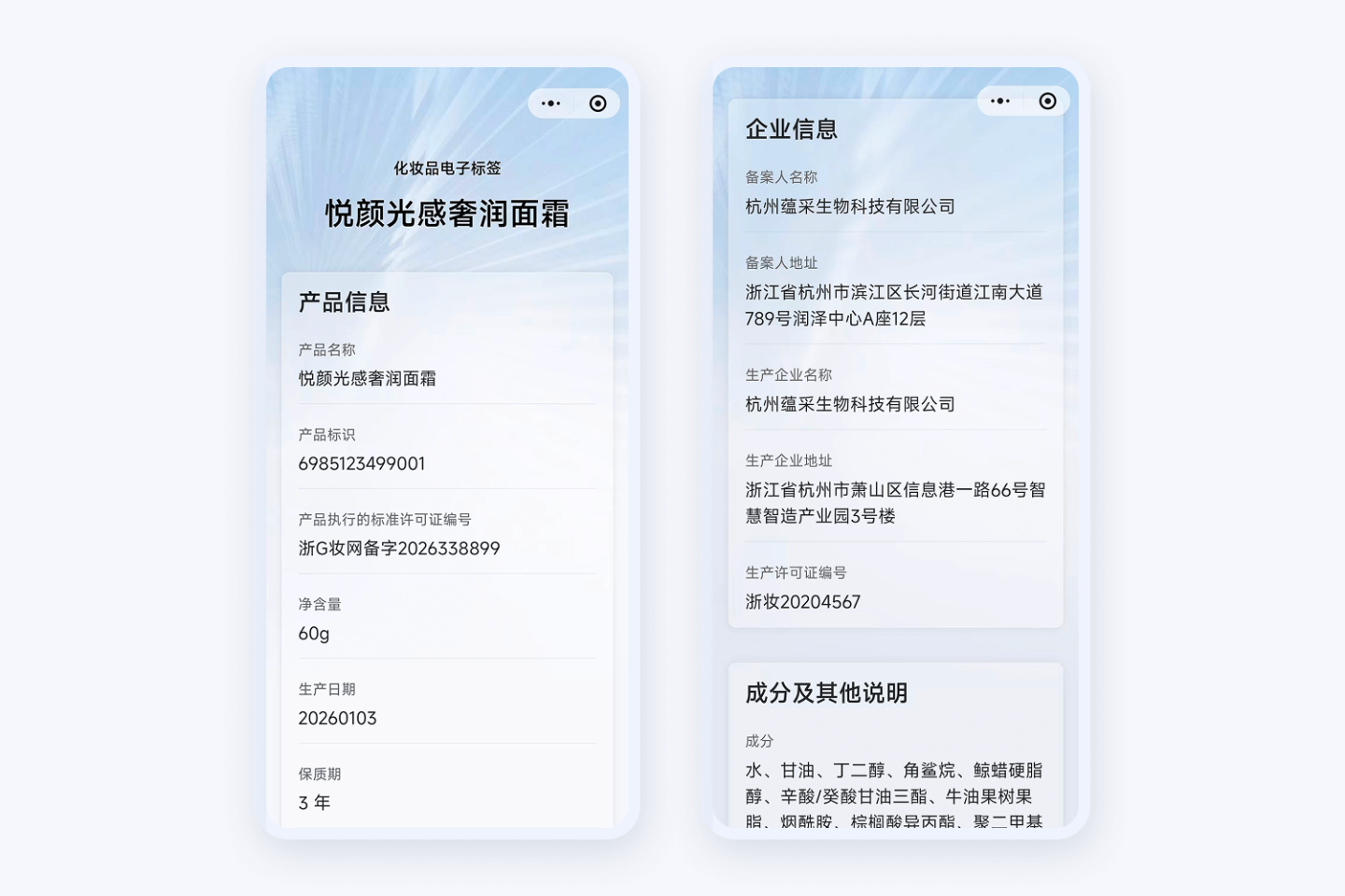 按国家药监局试点文件要求,结构化展示化妆品中文标签信息