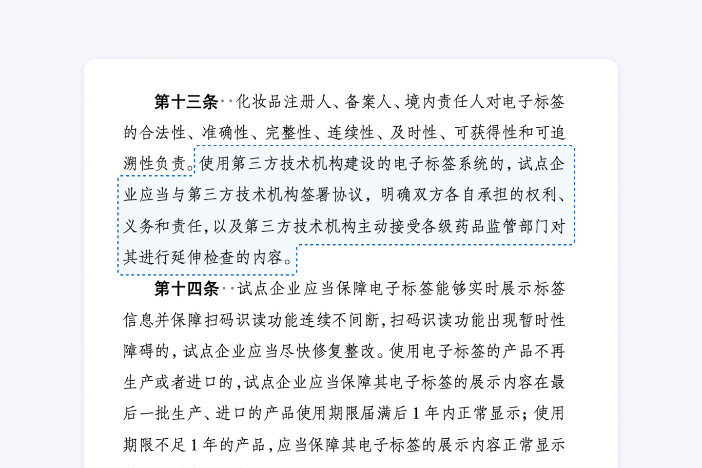 根据国家药监局《化妆品电子标签试点工作要求》,在监管部门检查时,我方按要求配合提供技术与资料支持
