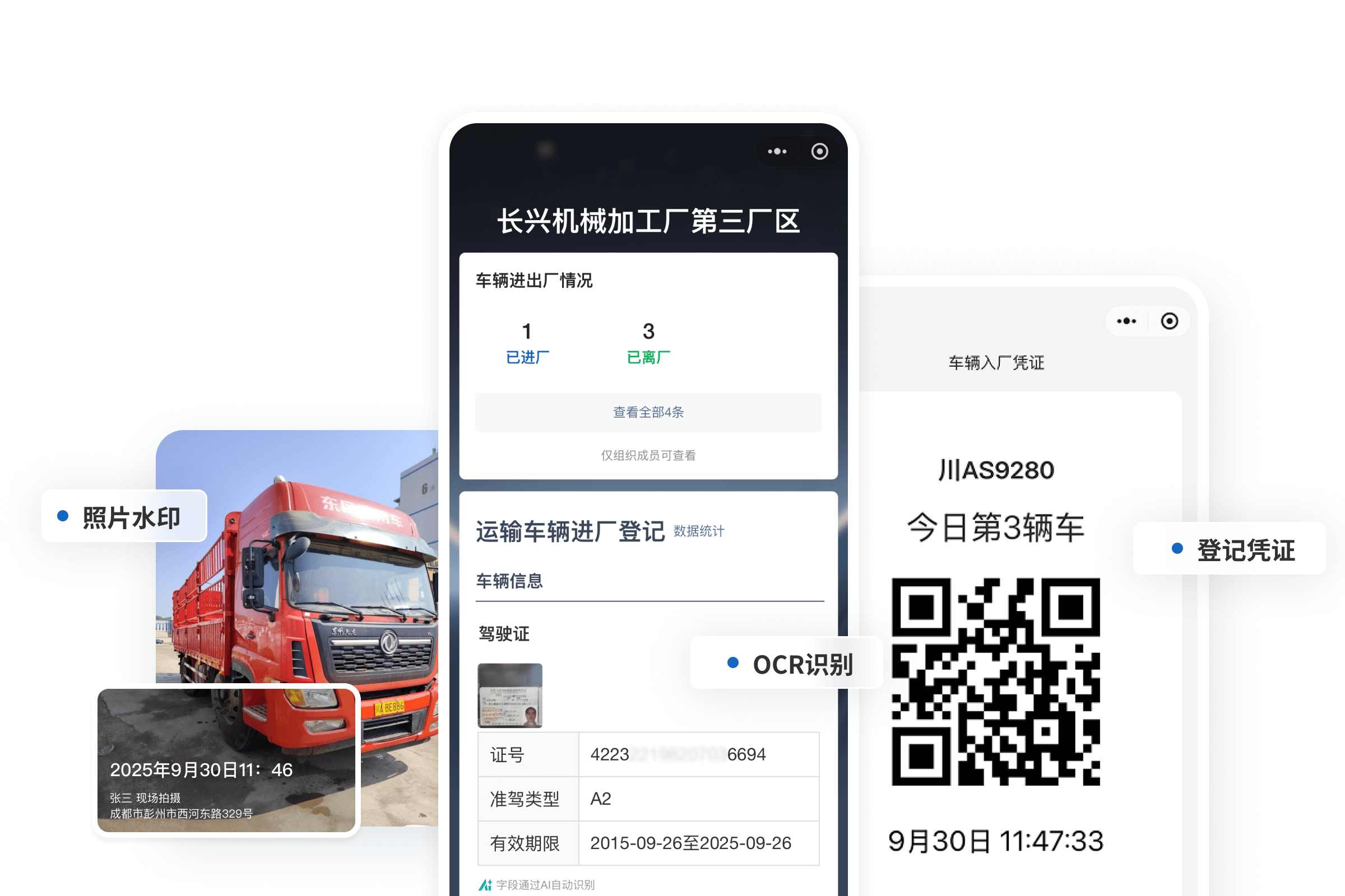 在工厂、园区或施工现场,对运输高价值物资、危化品或大型设备的安全资质、证件核验和信息留档都有严格的要求。