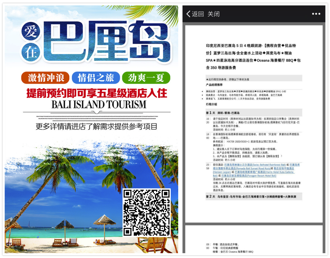 - 将行程和路线特色都写在二维码里,扫一扫就能详细了解,也方便通过社交裂变方式获得推广。
