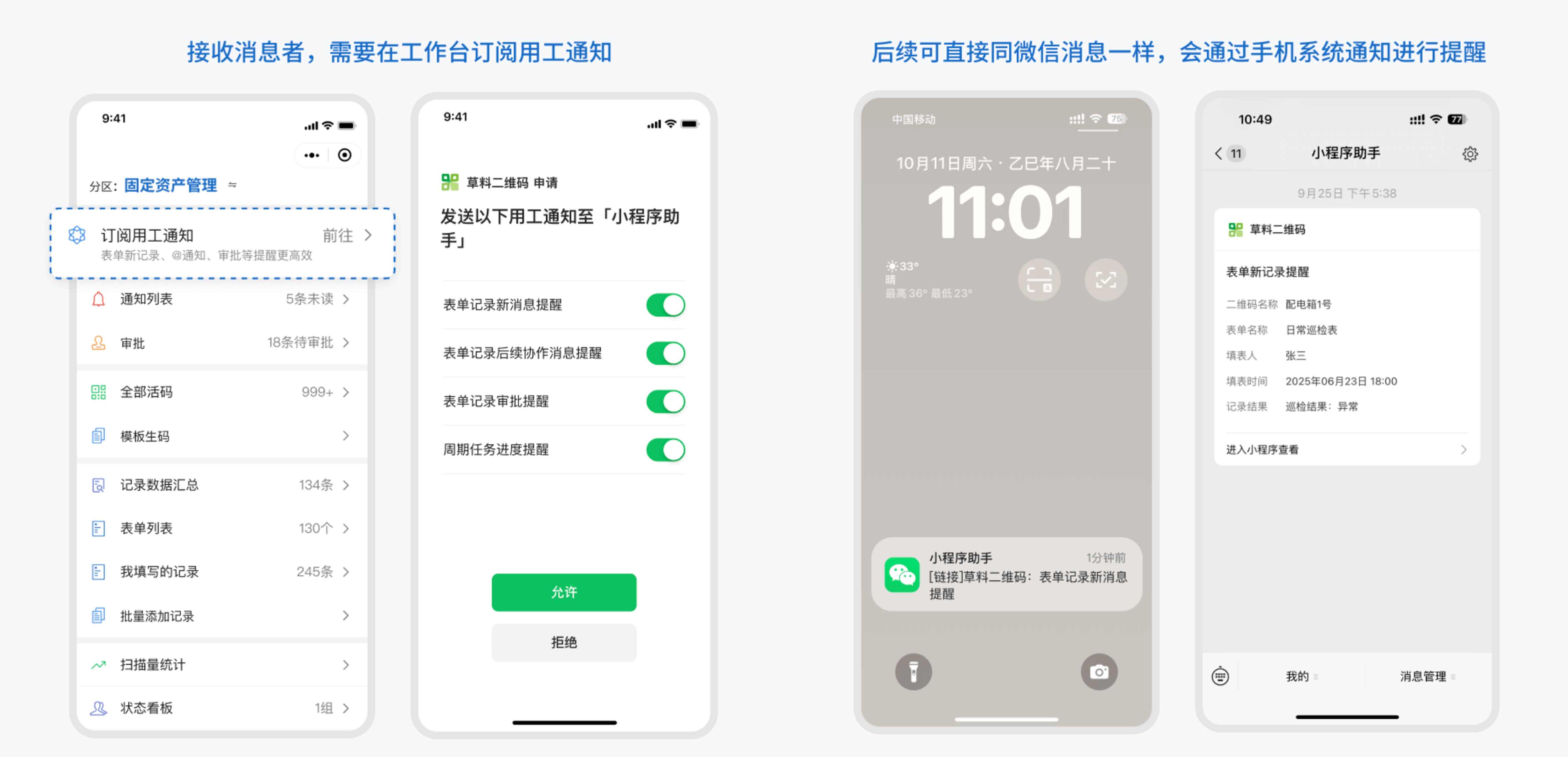 - 通知直接由微信系统级小程序推送。