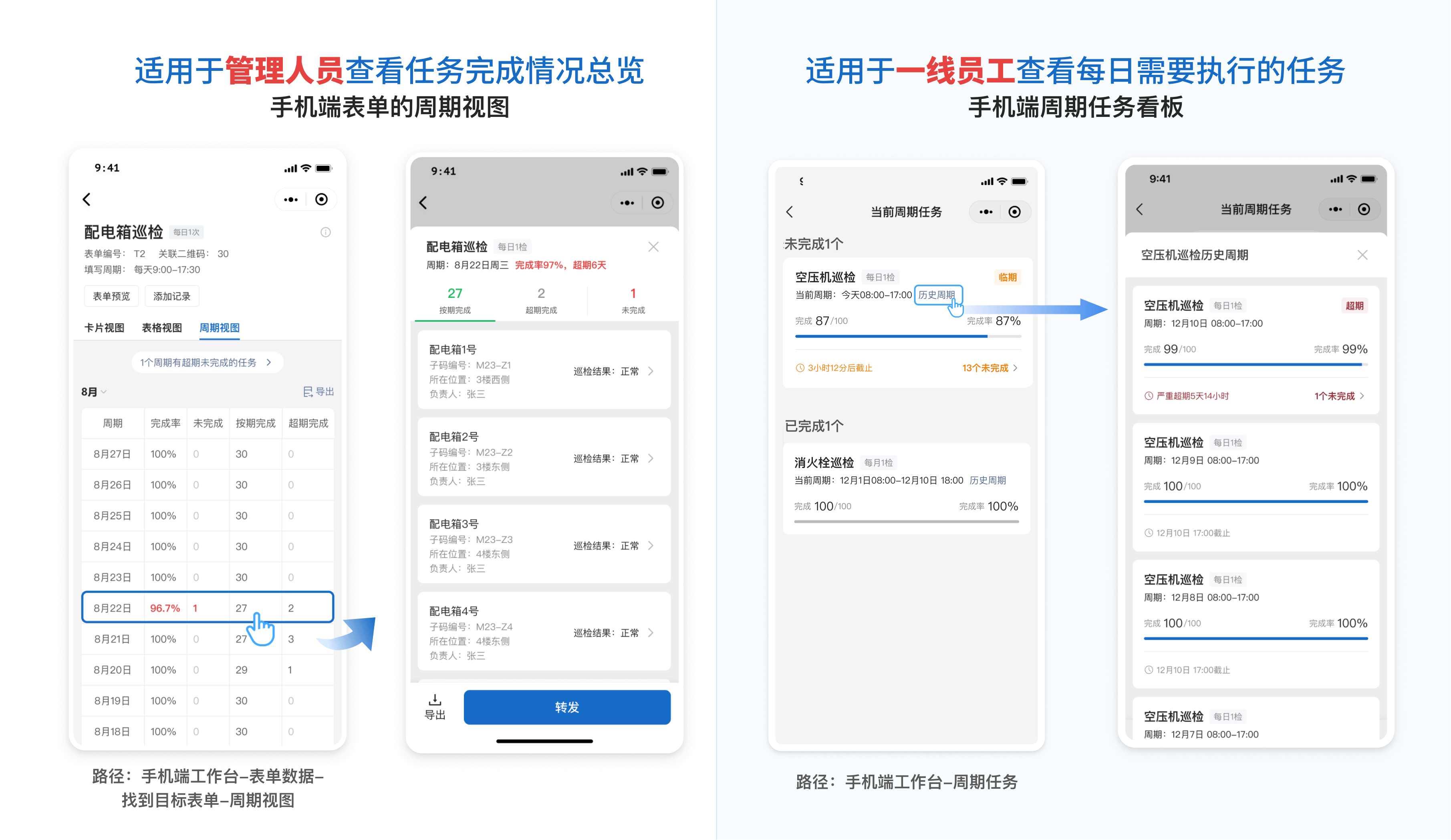 - 周期任务(新版): 体验更好,有倒计时、有状态标签,给一线员工更强的执行驱动力。