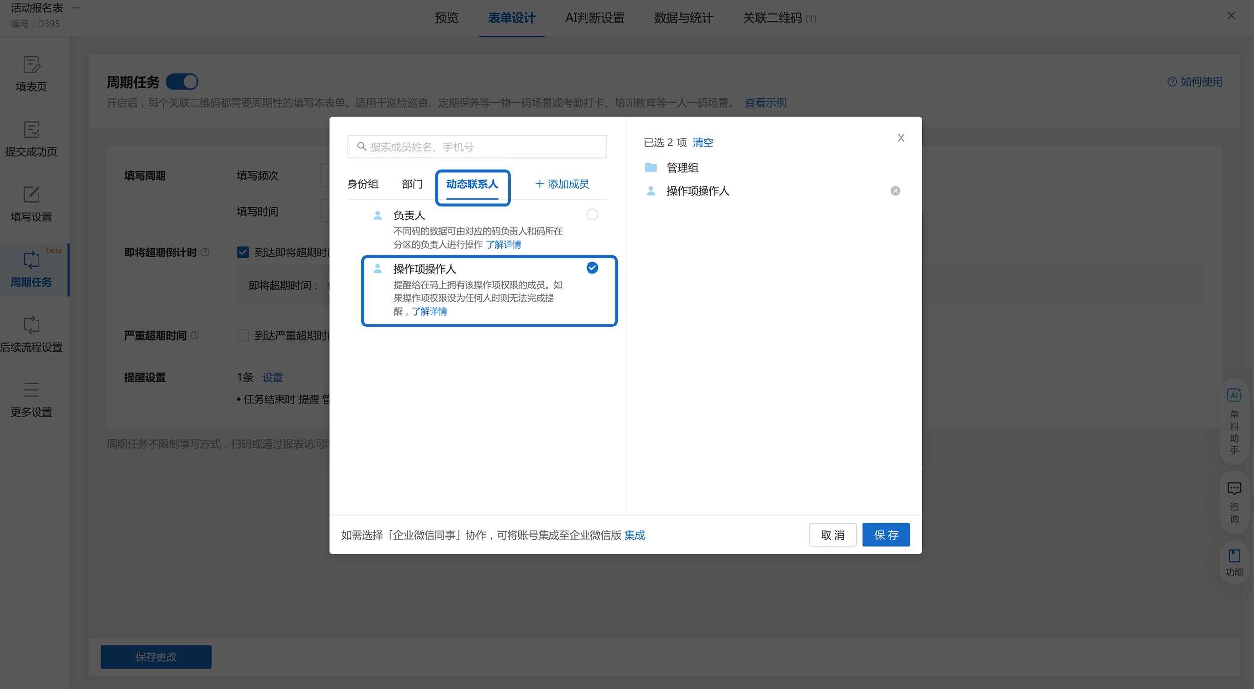 周期任务就像是给二维码装了一个“闹钟”。系统会根据你设定的频率(比如每天、每周),自动发布填写表单的任务,并监控有没有人按时完成填写。
