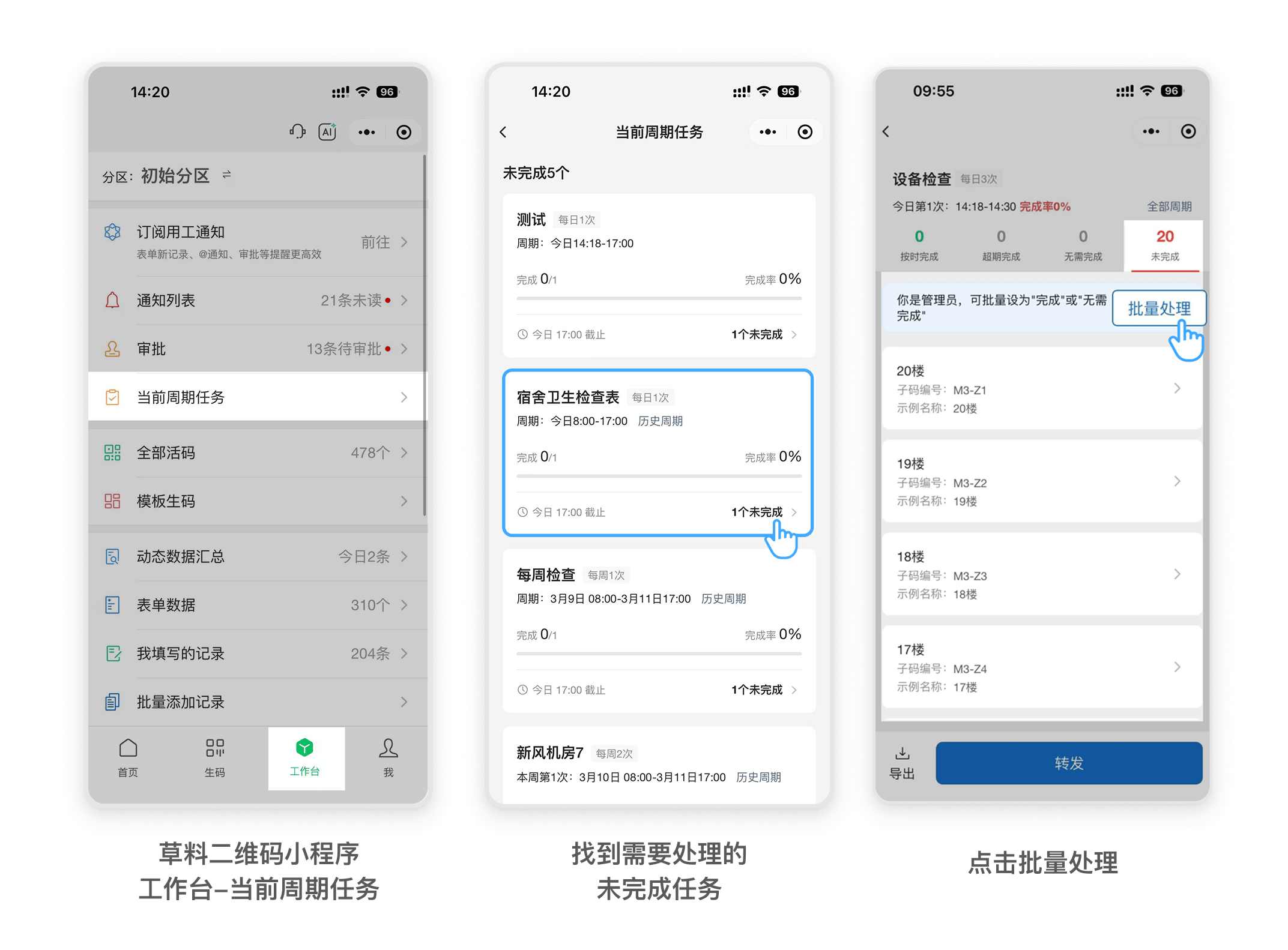 工作台-当前周期任务,找到需要处理的任务,点击批量处理