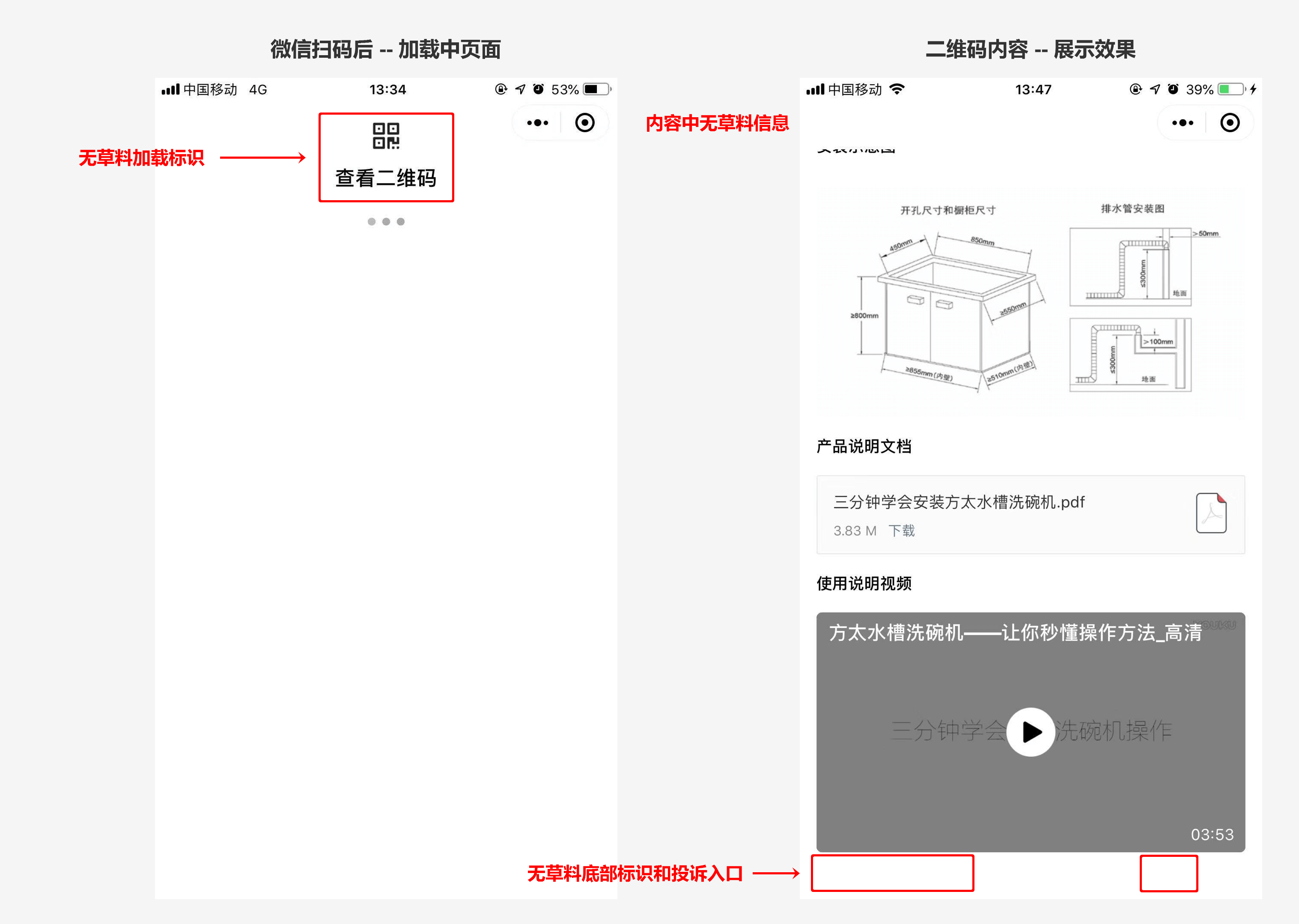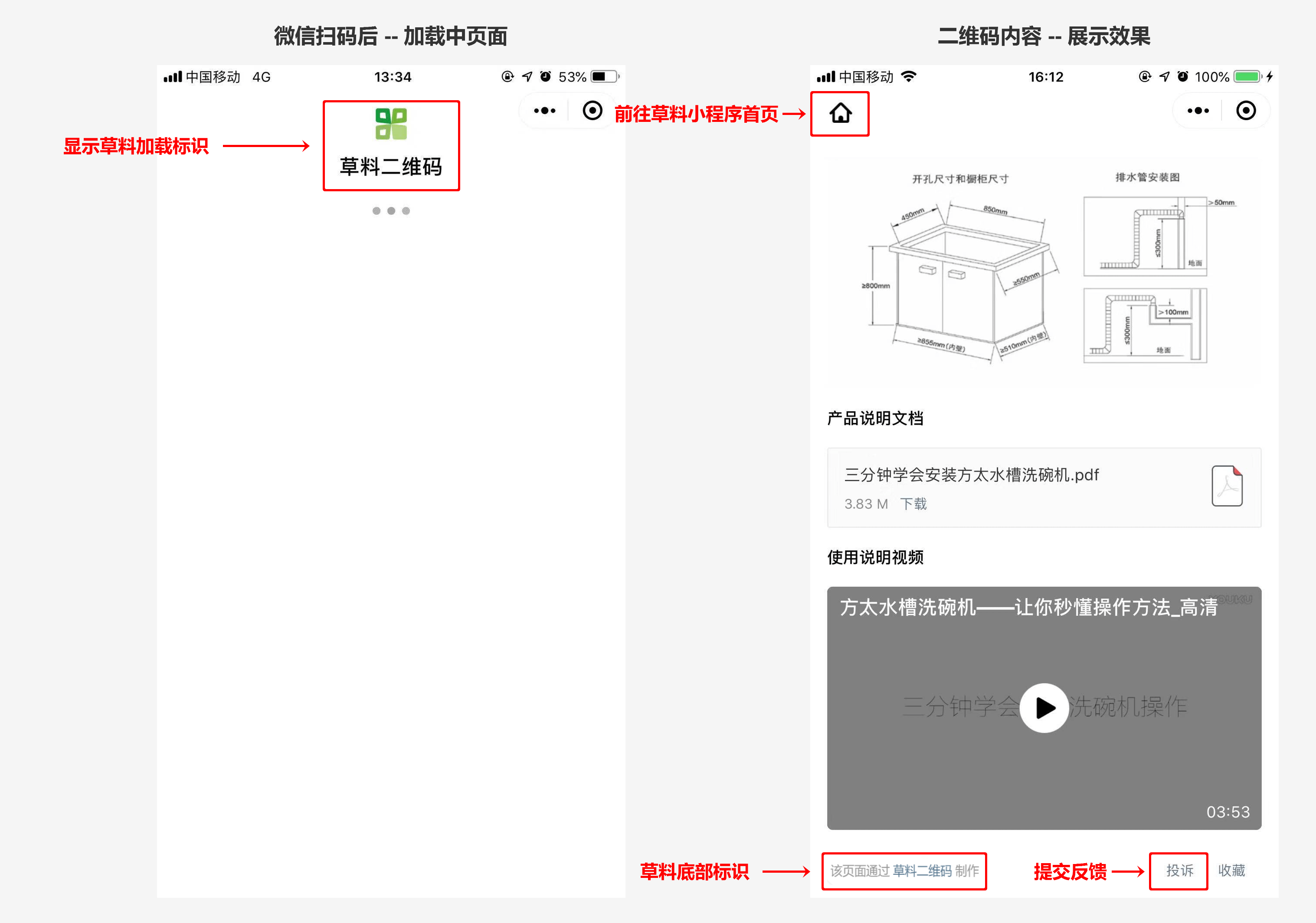 2)去除草料加载标识:使用【查看二维码】小程序打开,显示中性的logo,无草料标识