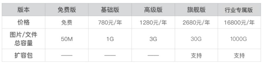 【旗舰版】及以上版本用户,可叠加购买空间扩容包,增加图片/文件存储空间,了解详情。
