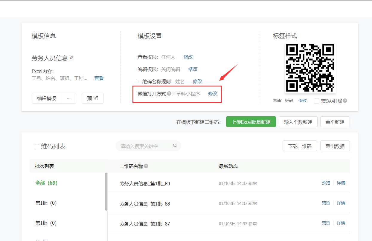 批量二维码:对模板的所有二维码进行统一切换,可在批量模板详情页——二维码显示设置中点击切换: