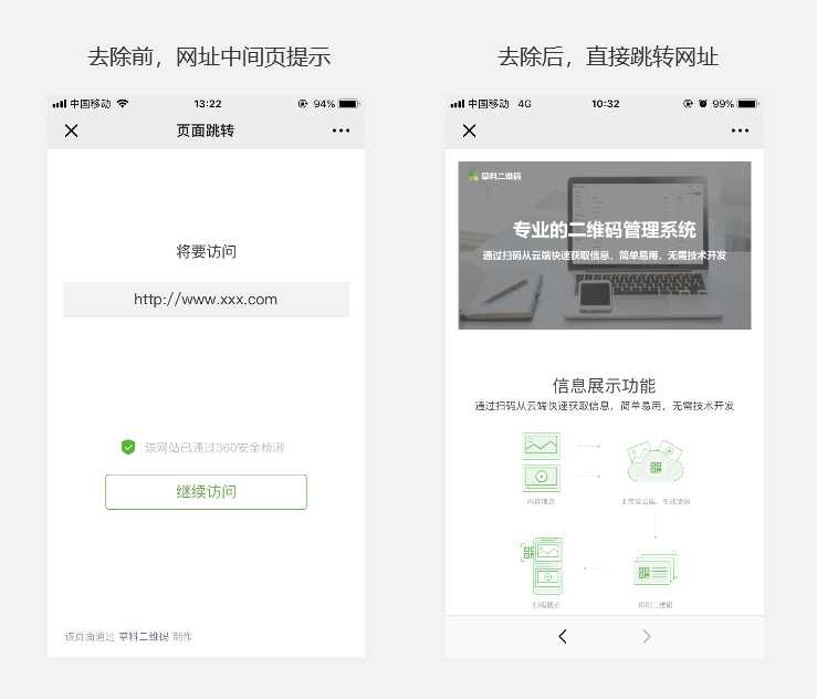 购买任意付费版本,自动去除账号下所有网址活码的中间页,直接跳转目标网址。