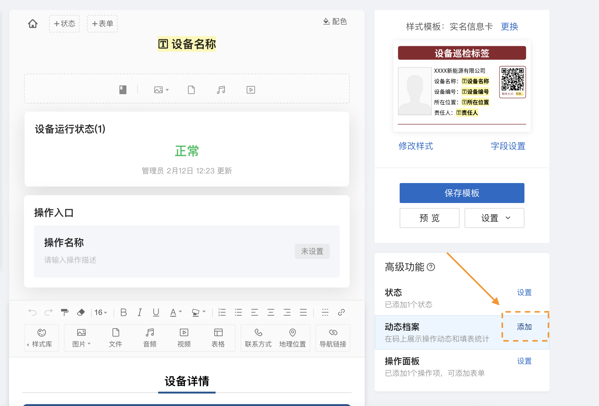 以制作设备巡检表单为例: