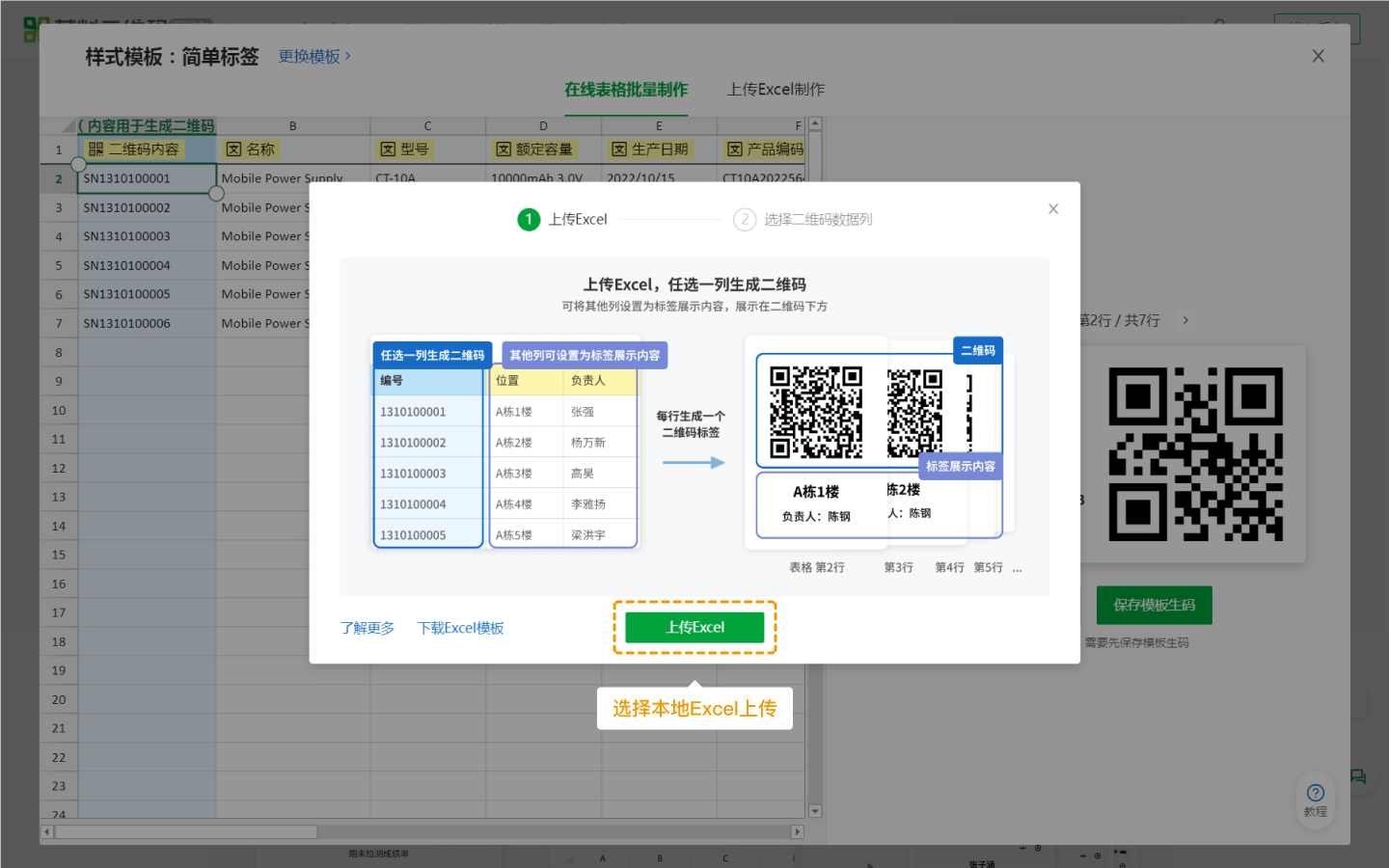如果已经将生码数据整理到本地Excel中,可选择上传Excel批量生码,缩短工作时间
