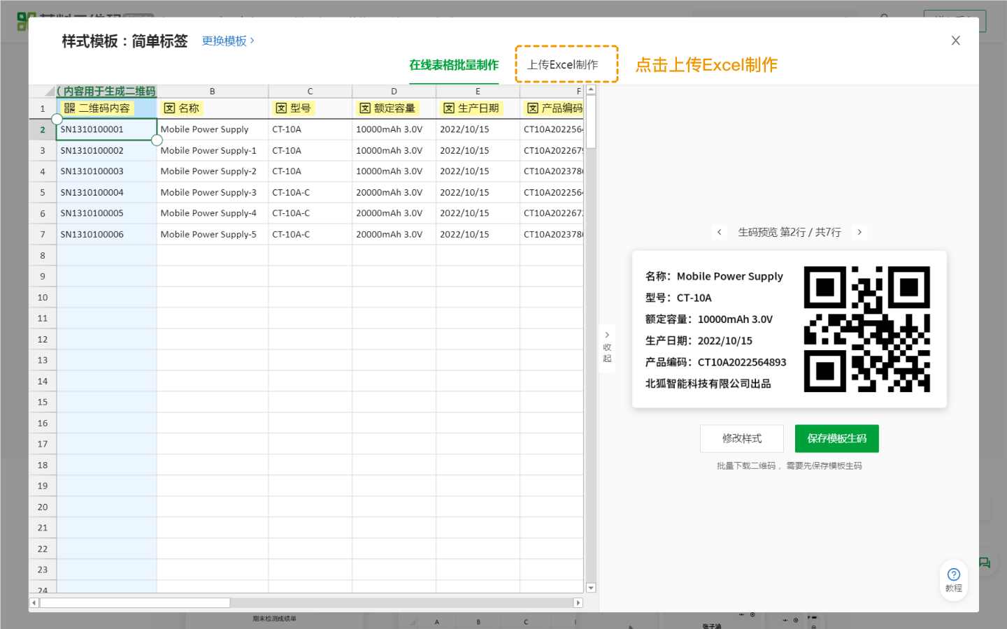 1.2 上传Excel批量生码