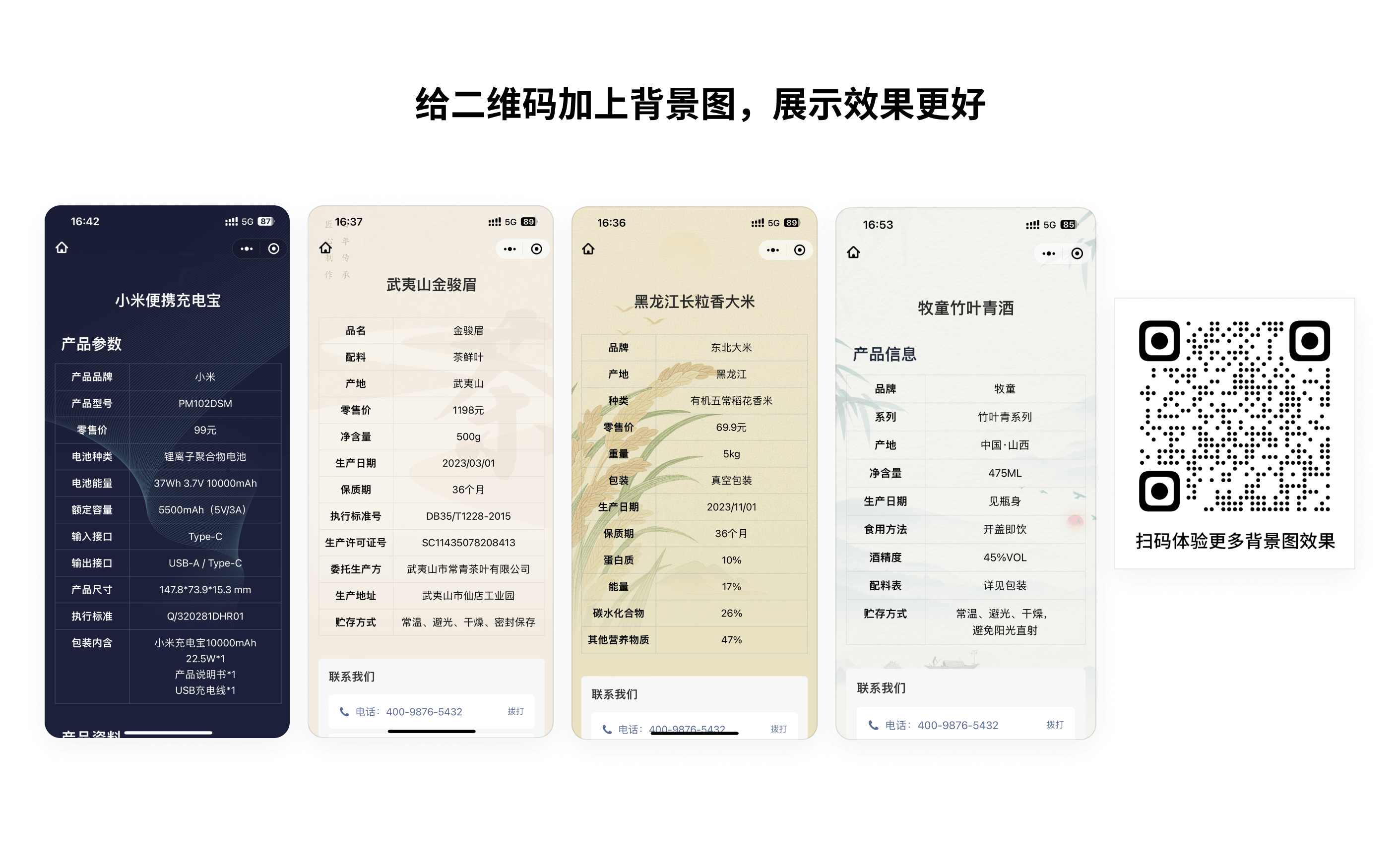 给二维码设置适合产品风格的背景图,让码的效果更好。你可以在背景图库中选择,也可以自己上传图片。
