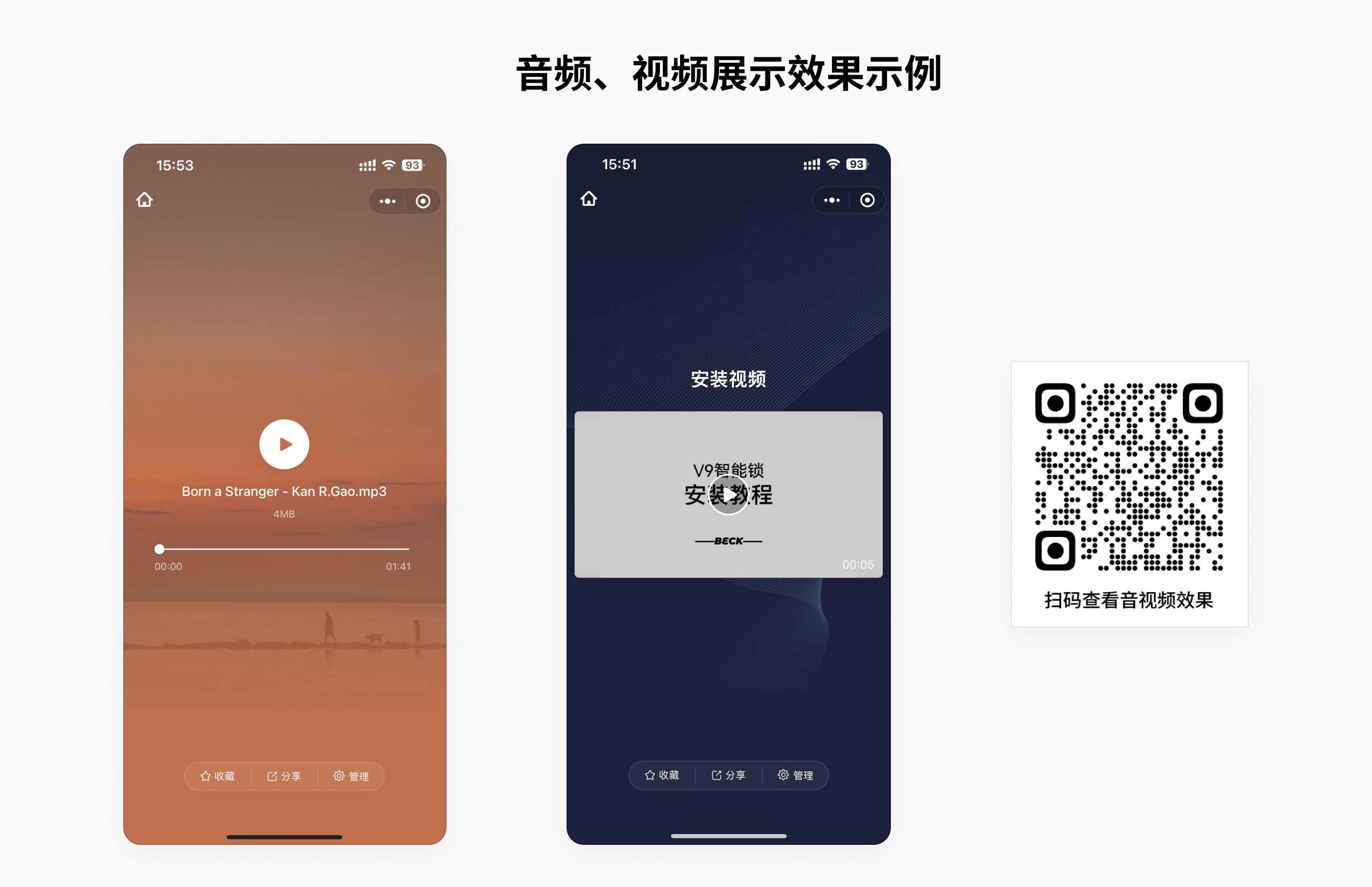 - H5网页:支持分享到朋友圈、码内的微信二维码等可以直接长按识别。但手机端的操作编辑功能将无法使用。查看效果示例
