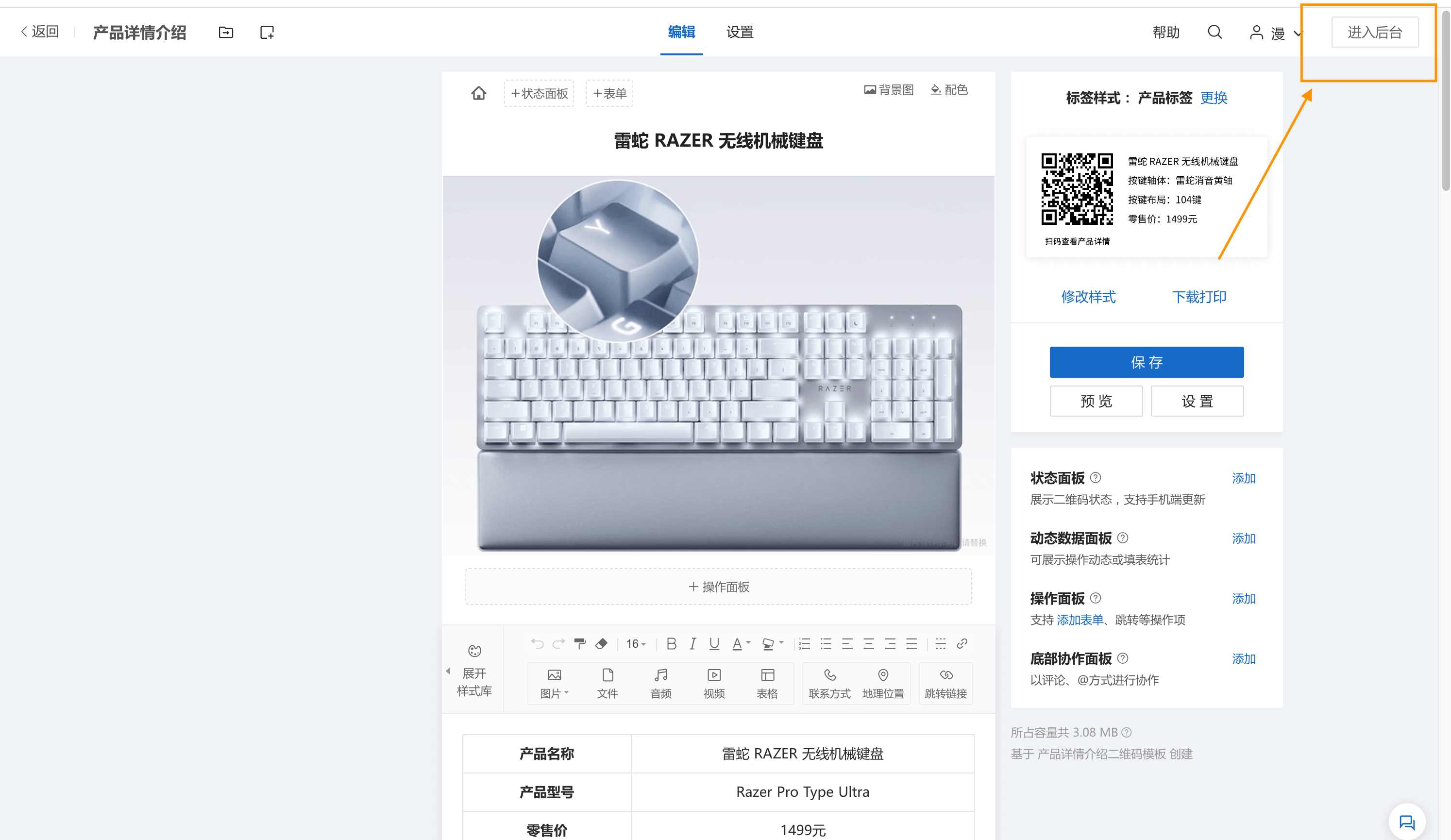 本篇主要以官方模板「产品详情介绍」为例,教大家如何从0开始制作单个内容展示活码,在掌握操作技巧后,你也能快速制作出一个效果还不错的二维码。