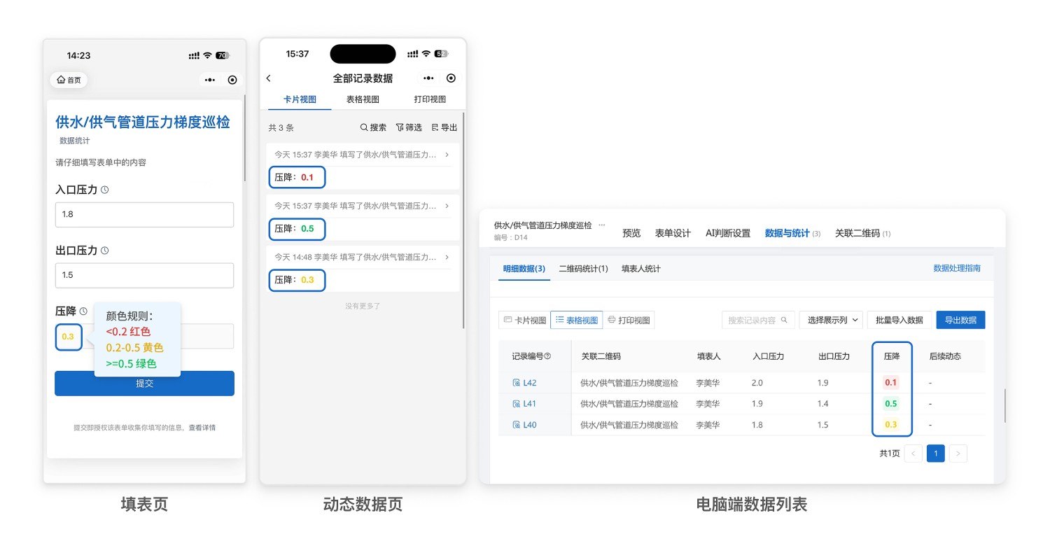 可为压降配置数值颜色区间标注,用不同颜色区分正常、关注、异常范围,便于快速判断压降是否在合理区间。了解详情
