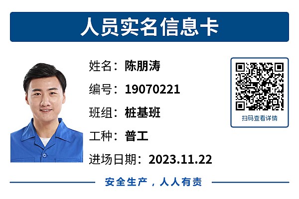 扫描二维码即可查看人员的基本信息、资质信息、安全培训记录等,帮助快速核查员工信息,是否本人到岗,提升现场监管效率。